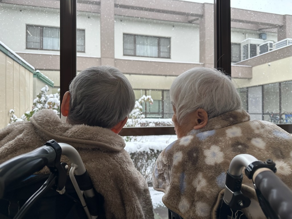 しんしんと静かに雪が降り積もり、いつもの中庭が真っ白な世界に ❄❄❄